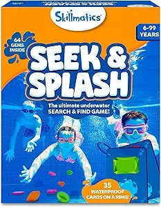 Skillmatics Seek & Splash Diving Gem Toys make pool time exciting and educational. The colorful gems and waterproof game cards keep kids engaged, while they practice swimming and quick thinking. It’s a game the whole family can join!